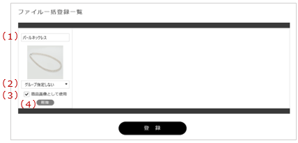 | 3 | 商品画像チェック | 商品画像として使用する場合はチェックを付けてください。 |